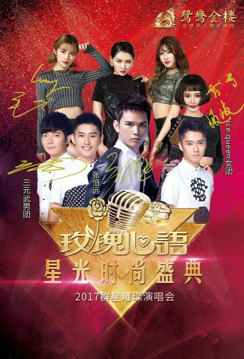 《中国好声音第二季》全国总决赛亚军张恒远、中央电视台《星光大道》人气冠军组合三元武、国内首支爵士女子天团ice queen、2009年快乐女声广州赛区10强选手黄小珊现身玫瑰心语星光时尚盛典,用歌声唱响告白之音。